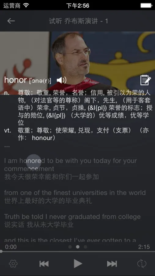 2. 同步中英文字幕,随意上下滑动,点击单词就能即时翻译...