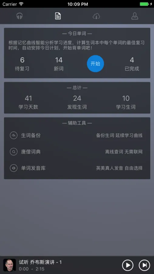 学英语练听力用心之作,有趣听力材料,同步中英字幕,单句、多句循环播放,点击单词就能即时翻译,按照记忆曲线背生词。