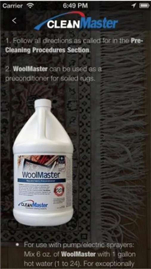 Step by step mobile app to cleaning carpet, upholstery, hard surfaces, spot cleaning, pet odors and restorative deodorizing.