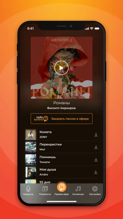 Установи приложение сейчас. Передай привет в эфире и закажи песню без очереди. Удиви друзей вместе с Radio Kartina