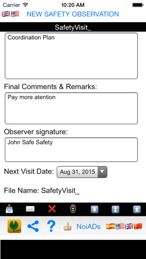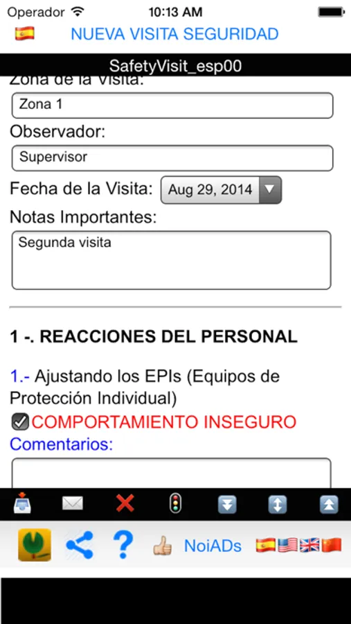 NEW SAFETY OBSERVATION: Creates a new form to perform a safety visit