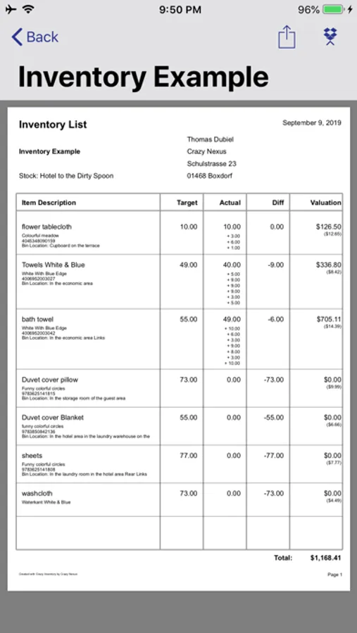 4) Export the inventory report or send it as pdf-data-file, labeled with your individual company address.