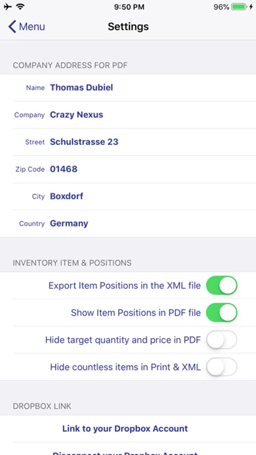 ■ The import and export of your inventory into your dropbox ist carrie out as an xml file.