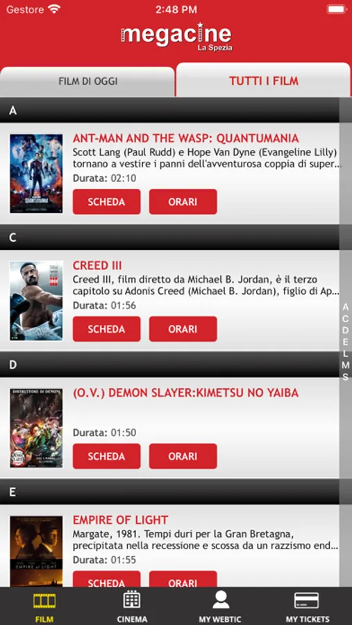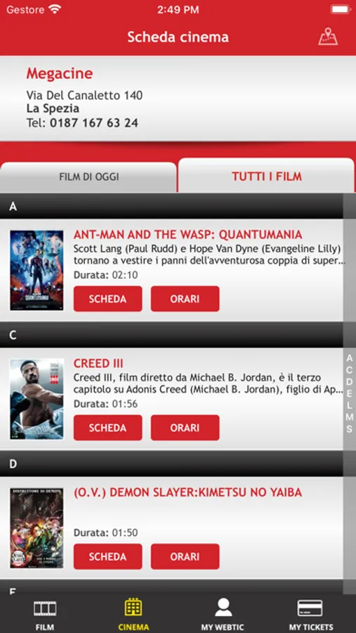 Applicazione di Crea Informatica, per l'acquisto e la prenotazione dei posti nella prestigiosa Multisala Megacine di La Spezia