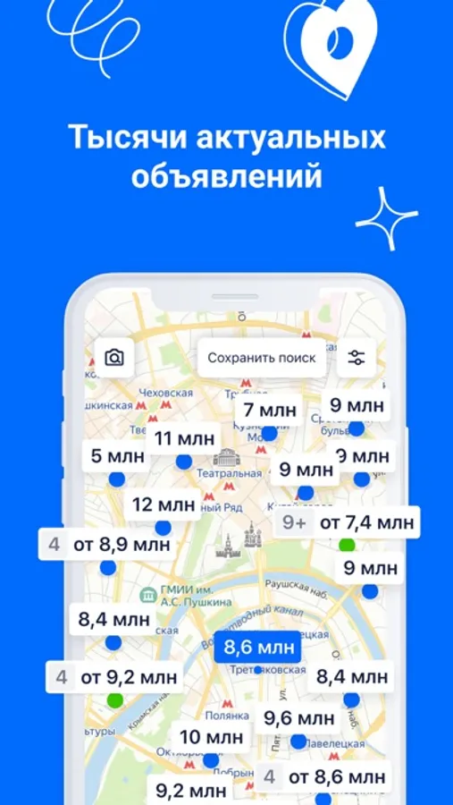 Аренда или покупка квартир, домов. Выбирайте подходящие вам объекты прямо на карте: выделите нужную зону поиска, и приложение покажет все актуальные варианты. Искать легко, потому что объявления уже содержат информацию о доме, районе и инфраструктуре — школах, детских садах, магазинах.