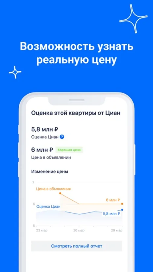 Оценка недвижимости. Бесплатно и за несколько секунд узнайте рыночную цену квартиры, кадастровую стоимость и арендную ставку. Посмотрите историю объявлений в доме.