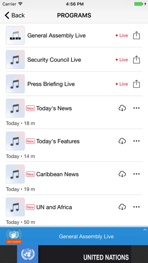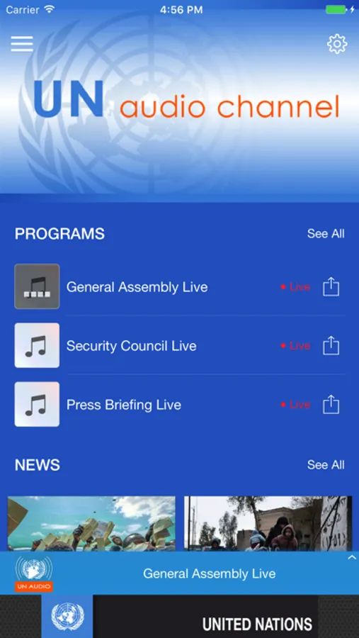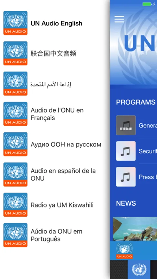 The UN Audio Channel app by AudioNow® Digital allows listeners access to: