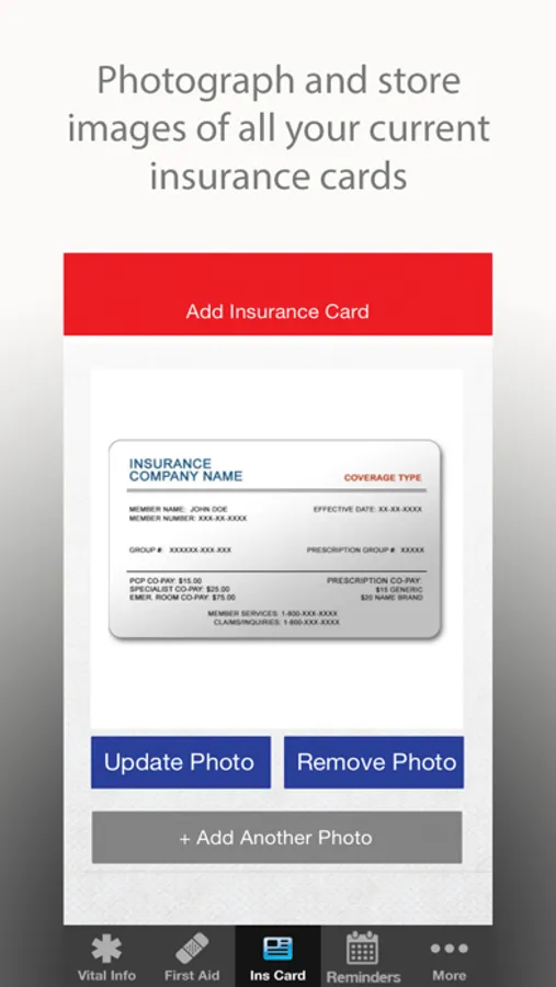 • Attach photos of current insurance cards, stored in one convenient location, for medical staff to quickly access