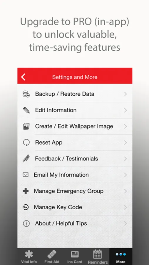 Vital ICE has a customized feature that allows first responders and other organizations to link their organization with app users in the area. A unique, 4-digit key code is provided to them, and if entered either during initial setup, (or later via the 'Manage Key Code' section) will allow for valuable local emergency alerts and other important communications to be sent from the participating organization via push notifications. No one will be able to access your information, unless they are actually viewing the app on your device, or in the event you have activated the 'Email My Information' feature and listed their email address as a recipient. The Email My Information feature uses 128-bit SSL encryption when sending your information to any recipient, all behind Amazon's firewalls, so rest assured your information is safe!