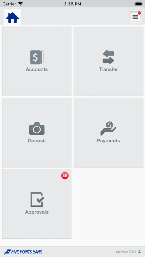 Getting started is easy. Simply download the app and sign on with your Five Points Bank Business Online user credentials. [No additional fees apply.*]. For more information about Five Points Bank Business mobile services, please visit 5PointsBank.com or call us at 800-5POINTS. *Carrier’s data rates may apply.