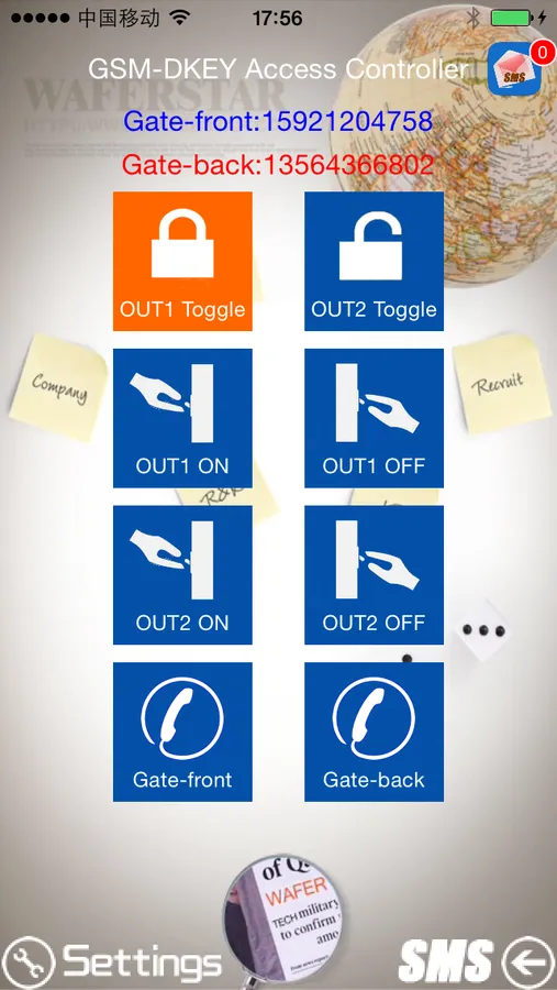 GSM-DKEY is specially designed for gate and electric door opener controller.GSM-DKEY can work with two SIM card online.This app is used to config and send the SMS to program the GSM-DKEY device.
