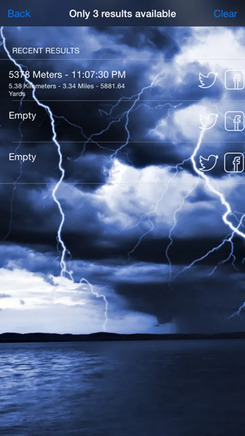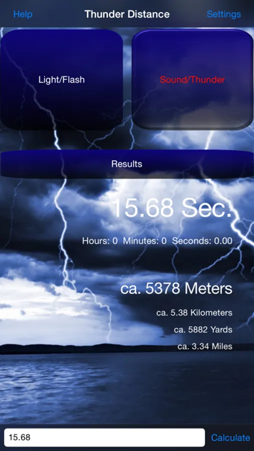 When you see a lightning flash outside, tap on the Light/Flash button in the app. When you hear the thunder, tap on the Sound/Thunder button. The app will give you a distance in Meters, Kilometers, Miles and Yards.