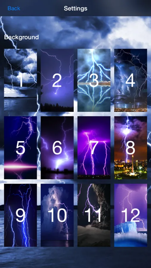 There are 12 different backgrounds available to choose from. There is also a Help page with a small explanation of the basic controls in the app.