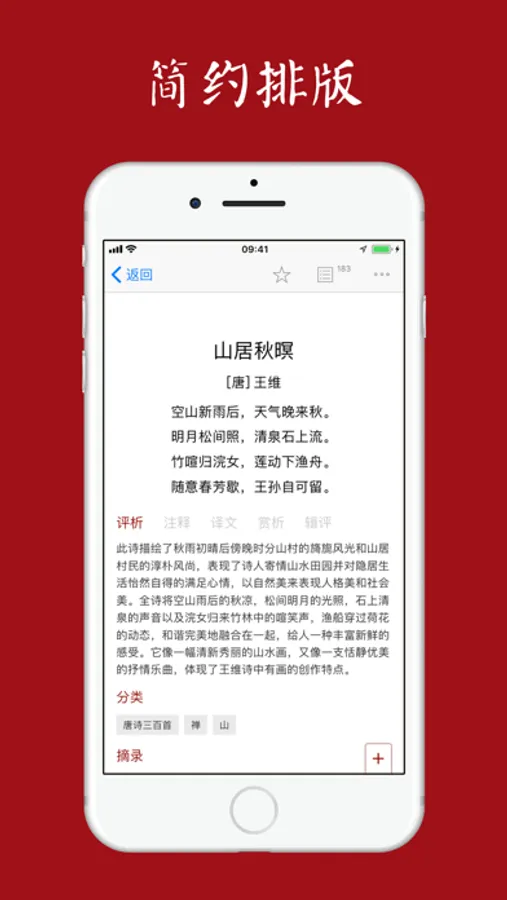 精选中国唐诗、宋词、古文,为你提供一个干净清新的欣赏空间。