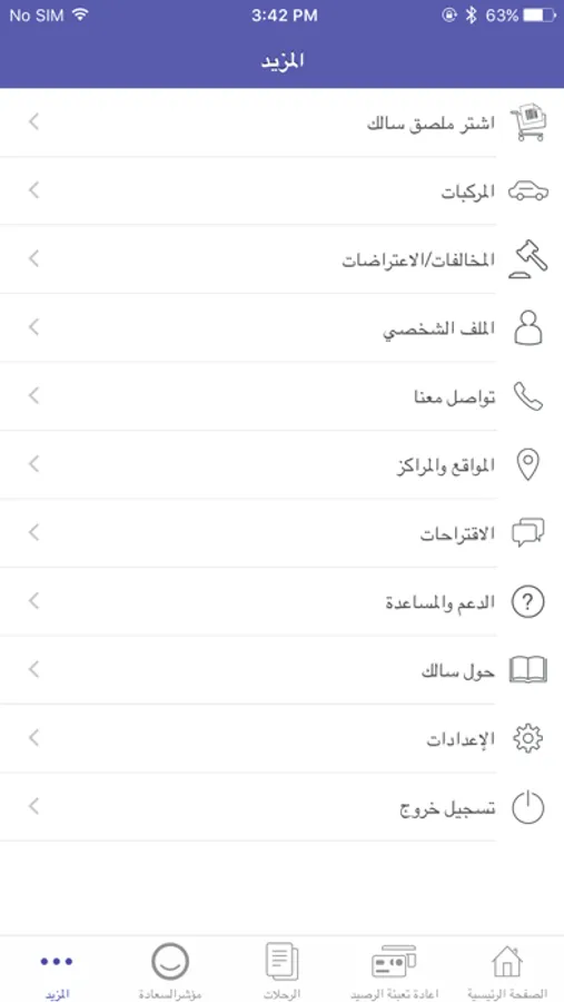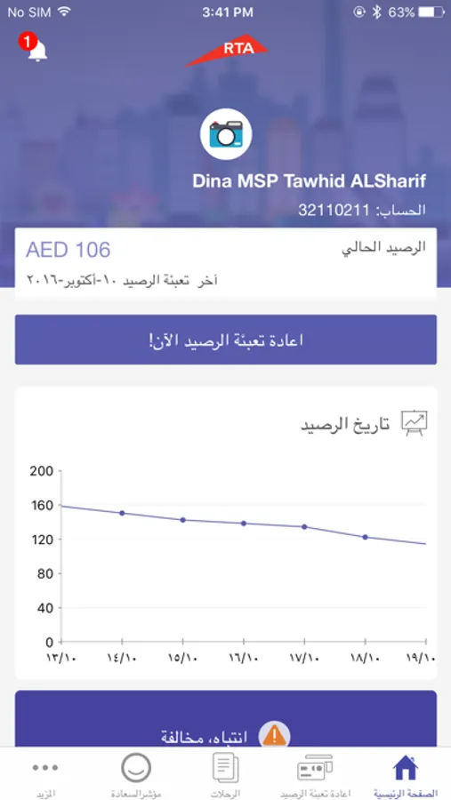 • عداد: ابق على دراية بآخر موعد لتعبئة حسابك لتجنب المخالفات.