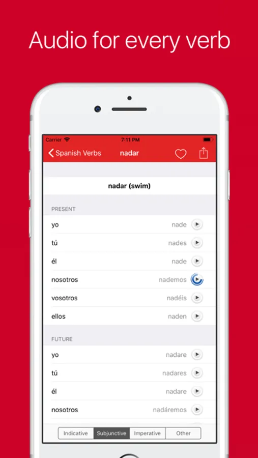 Now with audio!! Not sure how to pronounce a verb? You can now hear how every verb is pronounced. Just tap on the button next to the conjugation. Note: this functionality requires an Internet connection.