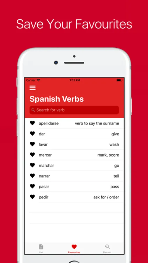 View over 700 verbs in 20 tenses. With simple navigation and built in search, you can find the verb you need in seconds.