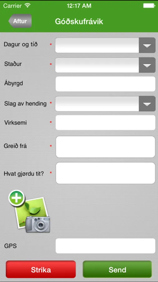 GPS – Vísir GPS kordinatar, hvar hendingin fór fram.