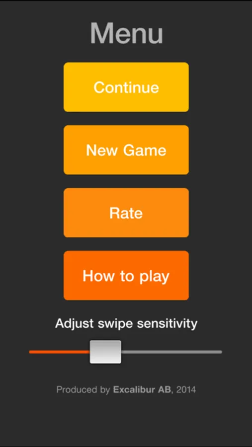 You can optimize your gaming experience by setting how sensitive the 2048 Mind Game will be when you swipe the tiles on the screen. Click the menu button in the app and adjust the sensitivity by moving the slider at the bottom of the screen.