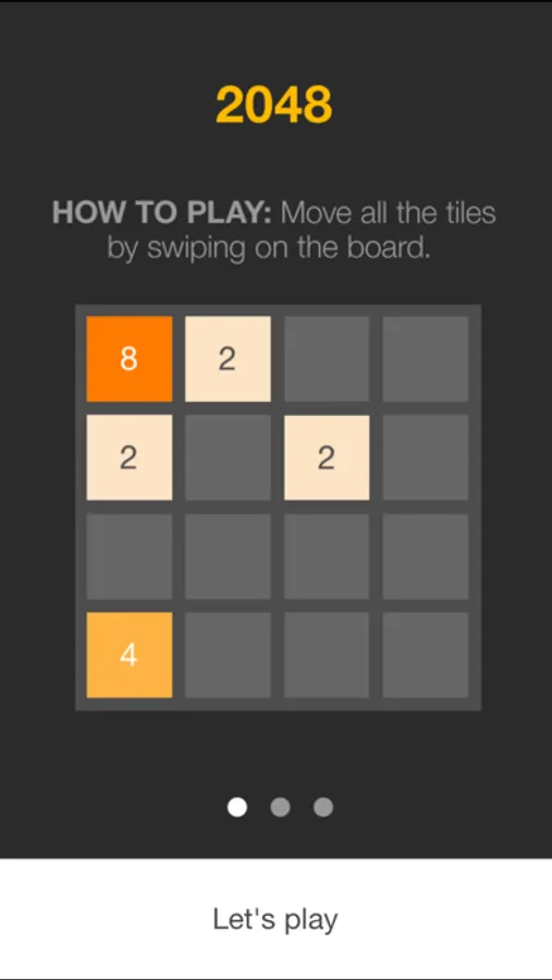 Move all tiles by swiping on the board. When two tiles with the same number touch they merge into one. Join all numbers and try to get to the 2048 tile. You loose when the board is full and you can't move any tiles.