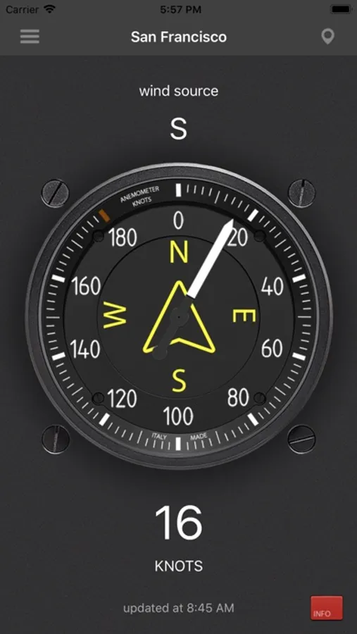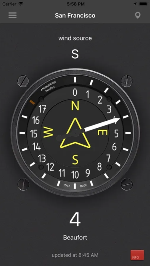 With an innovative design, inspired by the instruments of the aircraft, this app combines the concept of the wind with that of the compass resulting in ultimate speed and wind direction integrated in the compass.