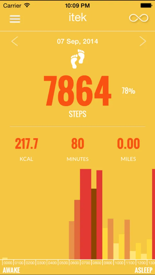 This app lets you track your activity during the day and night. Once you’ve setup the app and device, you’ll land on the Day Hemisphere screen which will show you a summary of your day’s activity upon successful sync with your device. Swipe right on the screen to bring up your Night Hemisphere data!