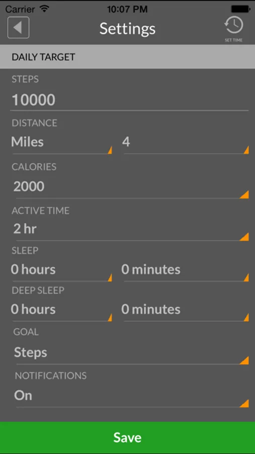 Choose your fitness goal: Steps taken, Calories burnt or Distance covered