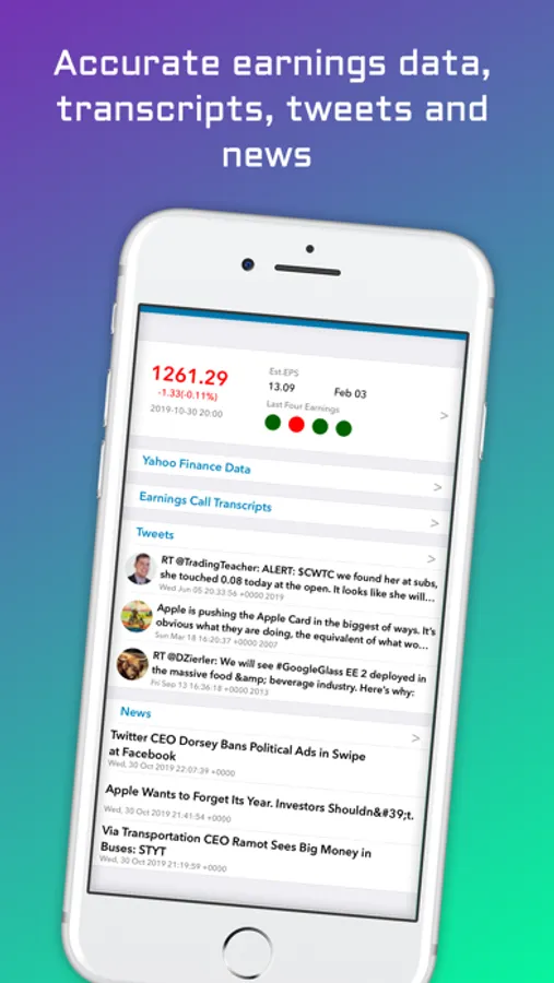 - Accurate data: provide earnings dates, analyst consensus, historical data, earning transcripts on over 8000 stocks.