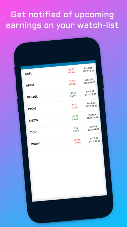 - Timely notifications: remind you beforehand when a company in your watch-list is reporting earnings.