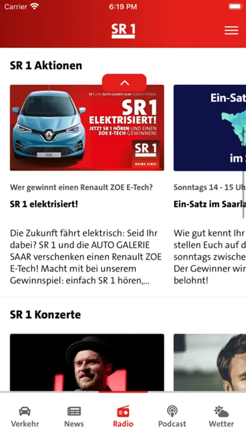 Das Erscheinungsbild der SR 1 App wurde komplett überarbeitet – das Resultat ist ein noch einfacheres Bedienen aller Elemente. Im Mittelpunkt steht nach wie vor der SR 1 Livestream. Ergänzt wird er durch die Musik-Recherche mit Informationen zu den zuletzt gespielten Songs. Die Startseite bietet außerdem einen Überblick zu aktuellen Aktionen, Gewinnspielen, Konzerten und Podcast-Empfehlungen.