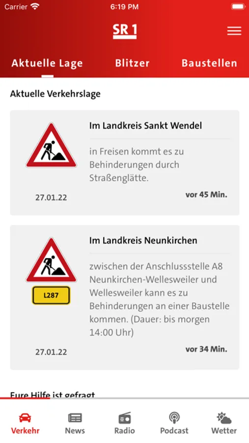 Wünsche und Anregungen an das SR1-Team können bequem über das Kontaktformular in der App versendet werden. Alternativ sind wir auch telefonisch und per WhatsApp erreichbar.