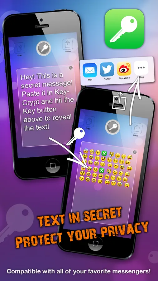 No more worrying about people looking over your shoulder - encrypt your texts in realtime!