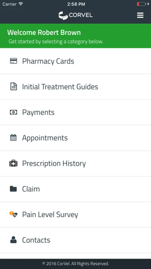 CorVel's My Care App provides you with instant access to information about your workers' compensation claim. You can access payment information, pharmacy cards, claim details, medical appointments, and contact information for your claims adjuster and case manager. The app also provides mobile access to sign up for direct deposit.