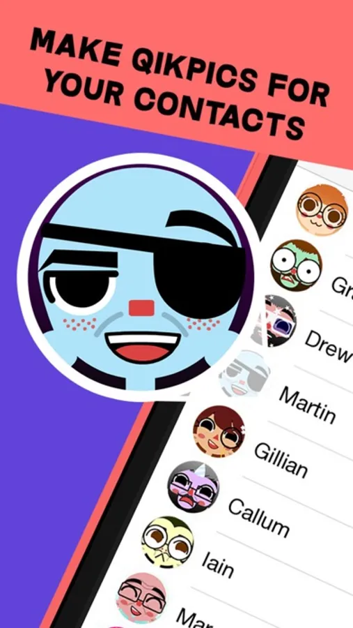 Get your creative juices flowing with QikPic! Create endless characters that look like your family, friends, co-workers, strangers, or even from your own imagination. Use the characters as your profile picture on sites like Facebook, Twitter and Instagram as well as sharing your characters with your contacts and assigning them as caller IDs. ***NEW*** Export your QikPic to a variety of physical merchandise including: phone/iPad cases, T-Shirts, stickers and more!