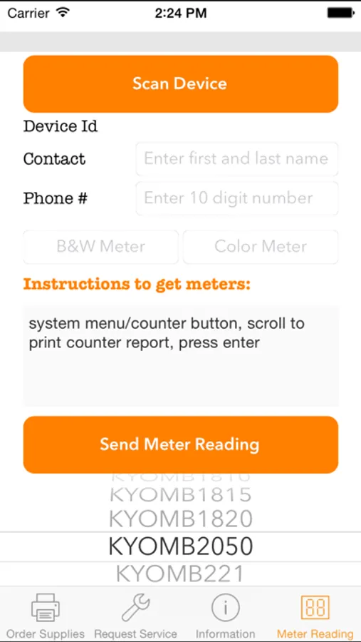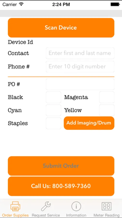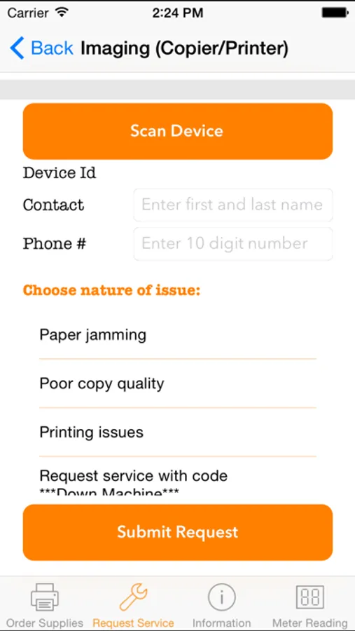 This application allows you to scan the equipment ID tag barcode from your phone or mobile device. This action automatically populates all logistics information into a simple submission form and you can complete your supply or service request or enter your meter reads to send directly from your device.