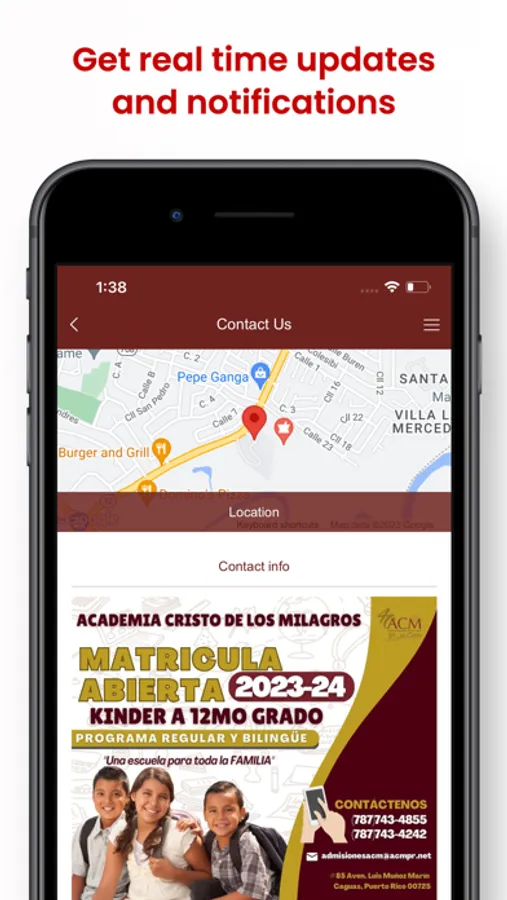 Our app facilitates the access to our events. It has direction view tabs, push notifications, calendar tab, gallery tab and contact tab. Stay up to date on the go. Get in touch with us. Download the app of Academia Cristo De Los Milagros free of charge.