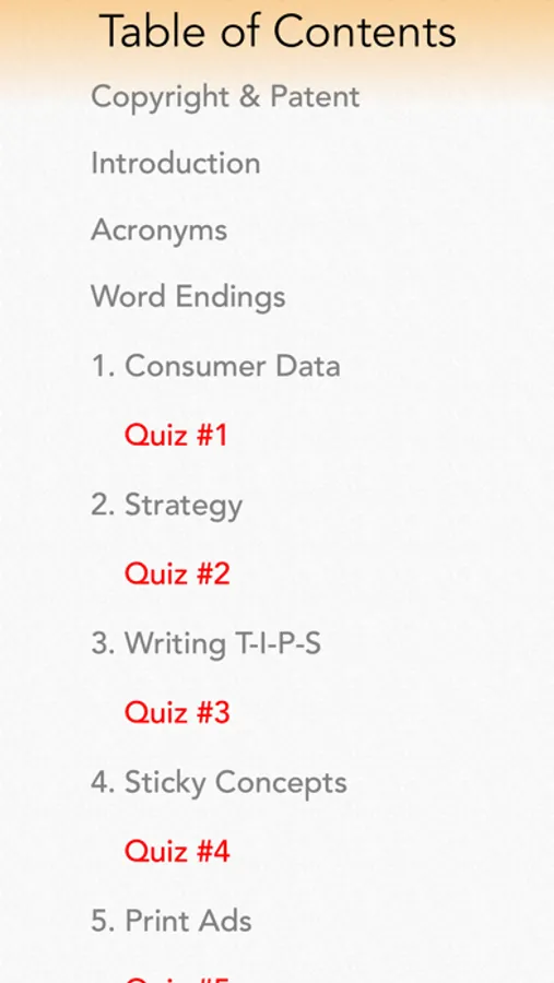 Focus your attention on the key points as you go through the modules, acronym by acronym. Identical word endings unify that module. For instance, Copywriting has "ance" at the end of each key word. You’ll find the interactive quizzes are fun to do. And they’ll make it easy to master each course in a flash!