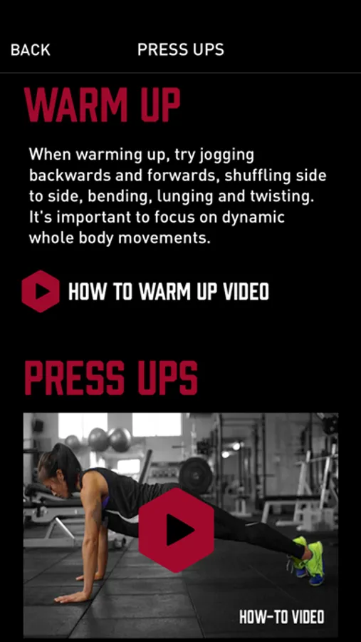 - Watch instructional warm up, exercise and cool down videos.