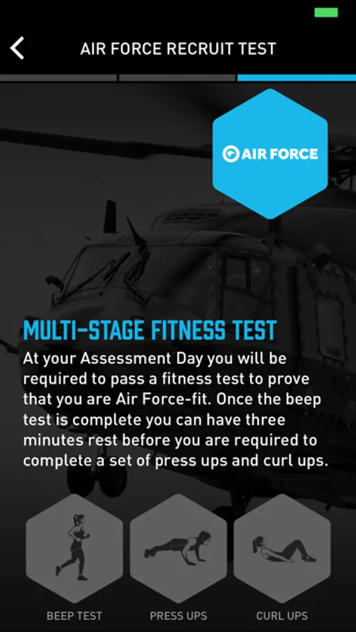 - Pit yourself against the actual Recruit Test Requirements needed to join the Navy, Army and Air Force.