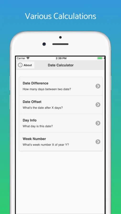 3. Day Info: tells you the week day, days left for the year and the week number it belongs to.