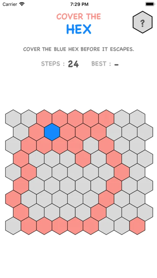 Objective of the game is "To Cover The Blue Hex in Minimum Steps".