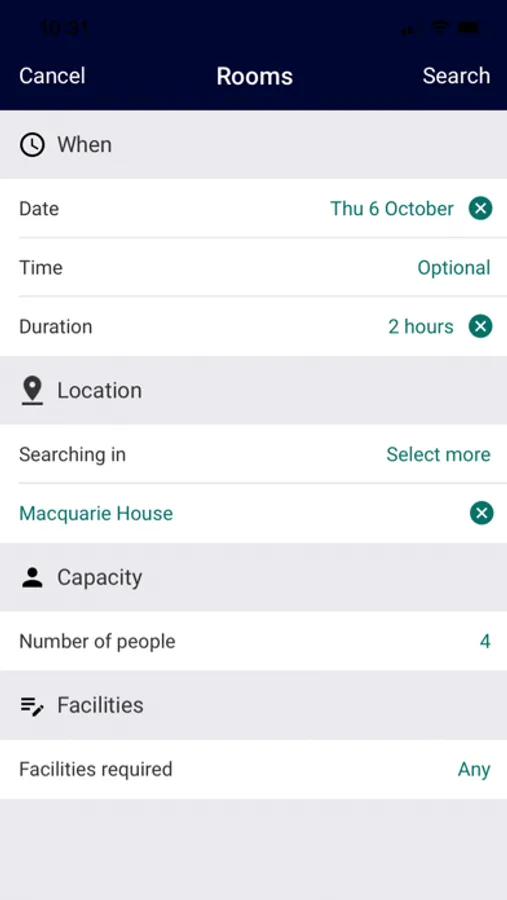 - Dead simple, flexible search. A meeting room with a whiteboard for 8 people that's available tomorrow afternoon? No problem.