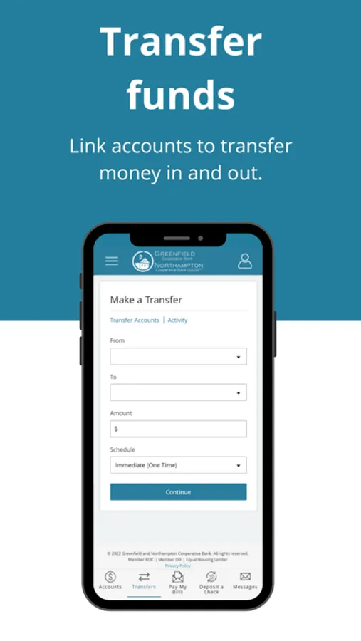 Easily access all of your accounts and features right at your fingertips with our mobile app. Manage your accounts, deposit checks, make transfers, pay bills and more!