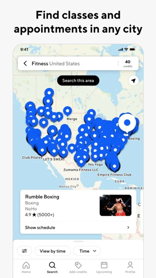 • Access thousands of the world’s leading fitness studios, gyms, salons and spas including CorePower Yoga, [solidcore], PureBarre, Glosslab & more!