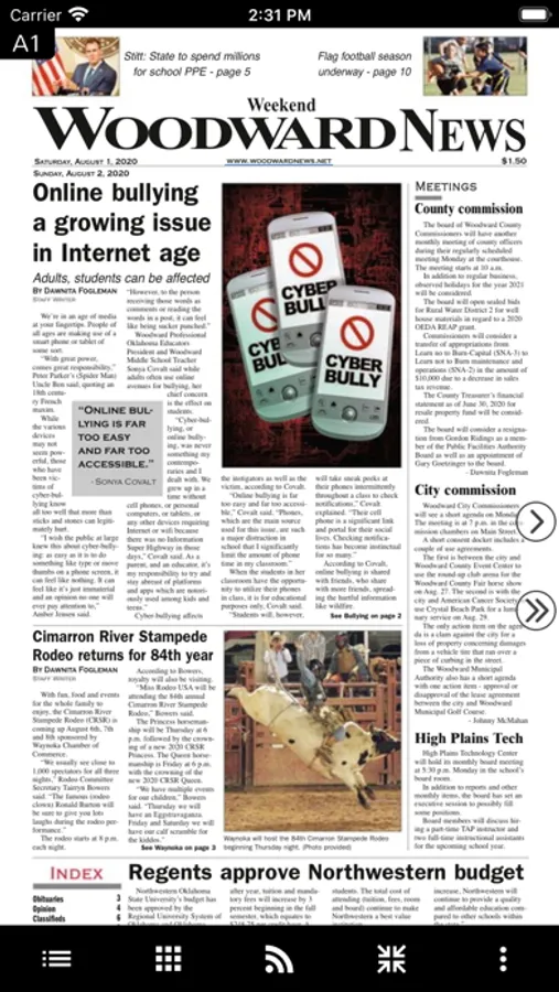 - View articles as they were written and edited for the Woodward News print edition.