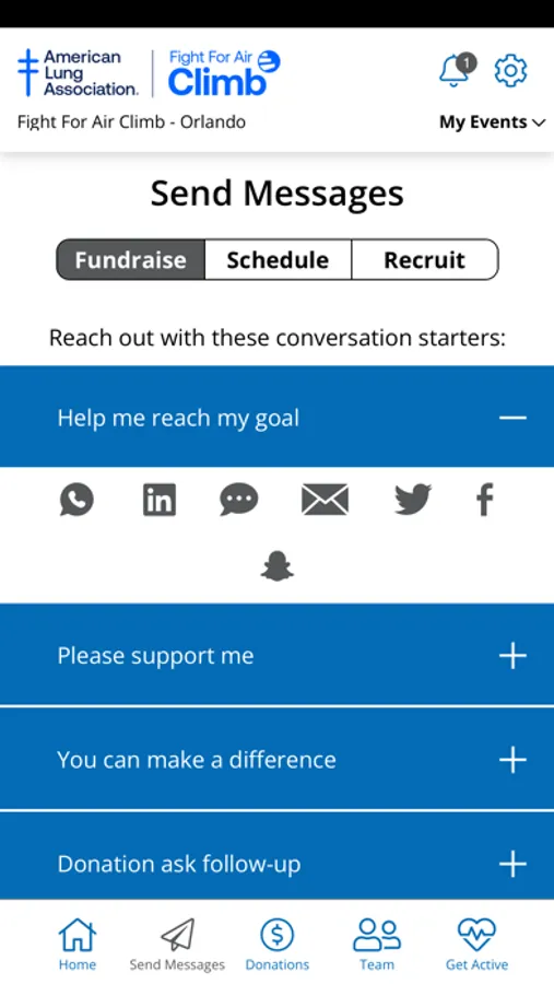 Please note: The Fight For Air Climb mobile app is only available to current registrants of the Fight For Air Climb event. If you have not yet registered for this year’s event, please go to www.lung.org/get-involved to find an event near you.