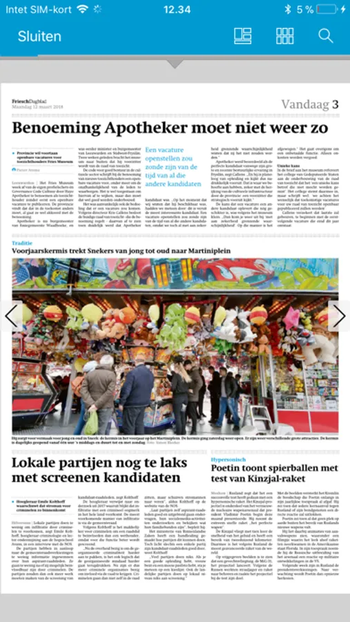 Het gebruik van de krant-app is gratis voor onze abonnees. Niet abonnees, of abonnees die gekozen hebben om alleen de papieren krant te ontvangen, kunnen de app gratis downloaden en een los nummer kopen. De krant is na downloaden ook offline te lezen. Ideaal voor onderweg of op vakantie. Deze kranten blijven uiteraard ook beschikbaar in uw persoonlijke archief.