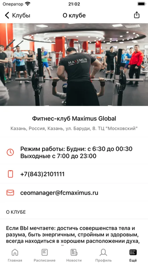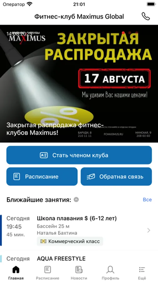- ознакомиться со специальными предложениями клуба и узнать о предстоящих мероприятиях