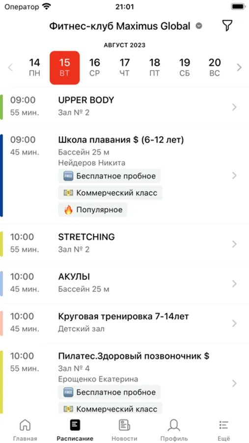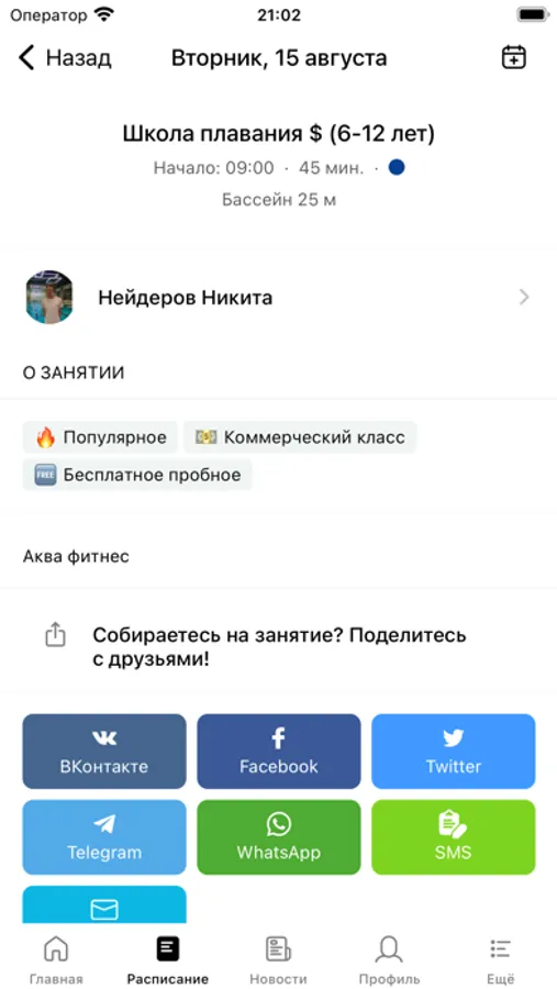 - получать оповещения о предстоящих тренировках и обо всех изменениях;