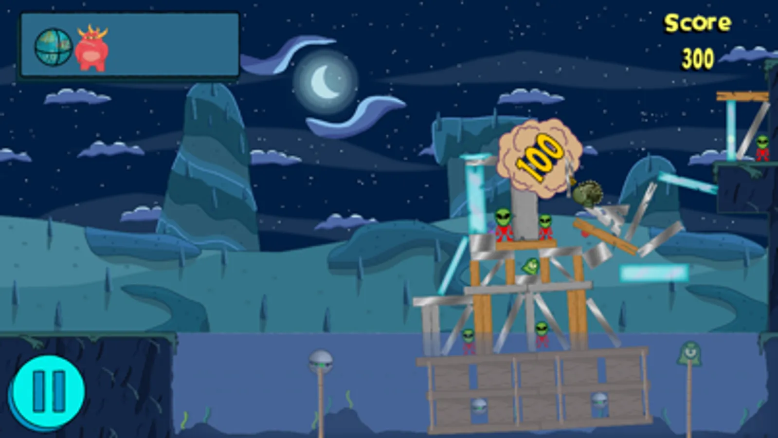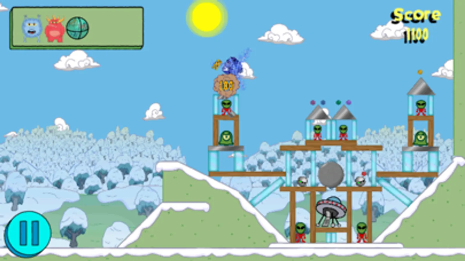 In the game Invaders have arrived and the monsters must fight back! Set the ramp, set the power bar and launch your monster! Some monsters have special powers to help fight back in lots exciting levels. Can you help the monsters protect their homes?